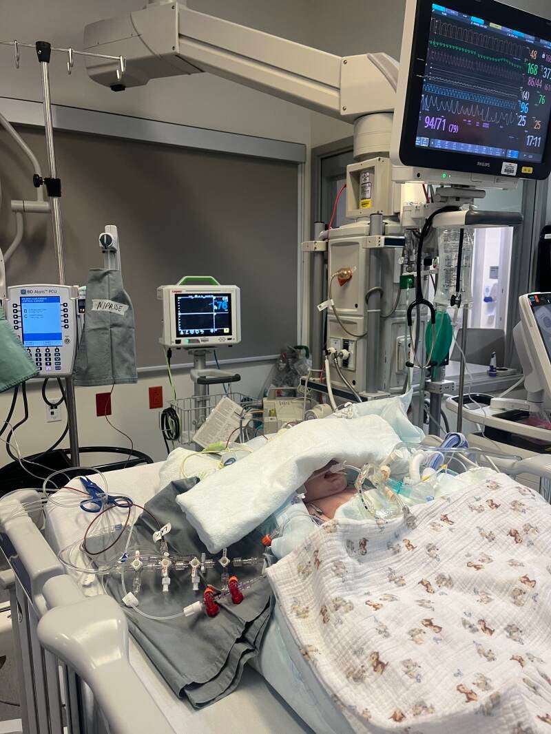 2 weeks after being in the NICU, healing, off breathing support, off heart medication because he was able to keep it open on his own, and ready to start dialysis he was moved up to a more stable wing of the hospital which we spent most of the rest our time in the hospital.